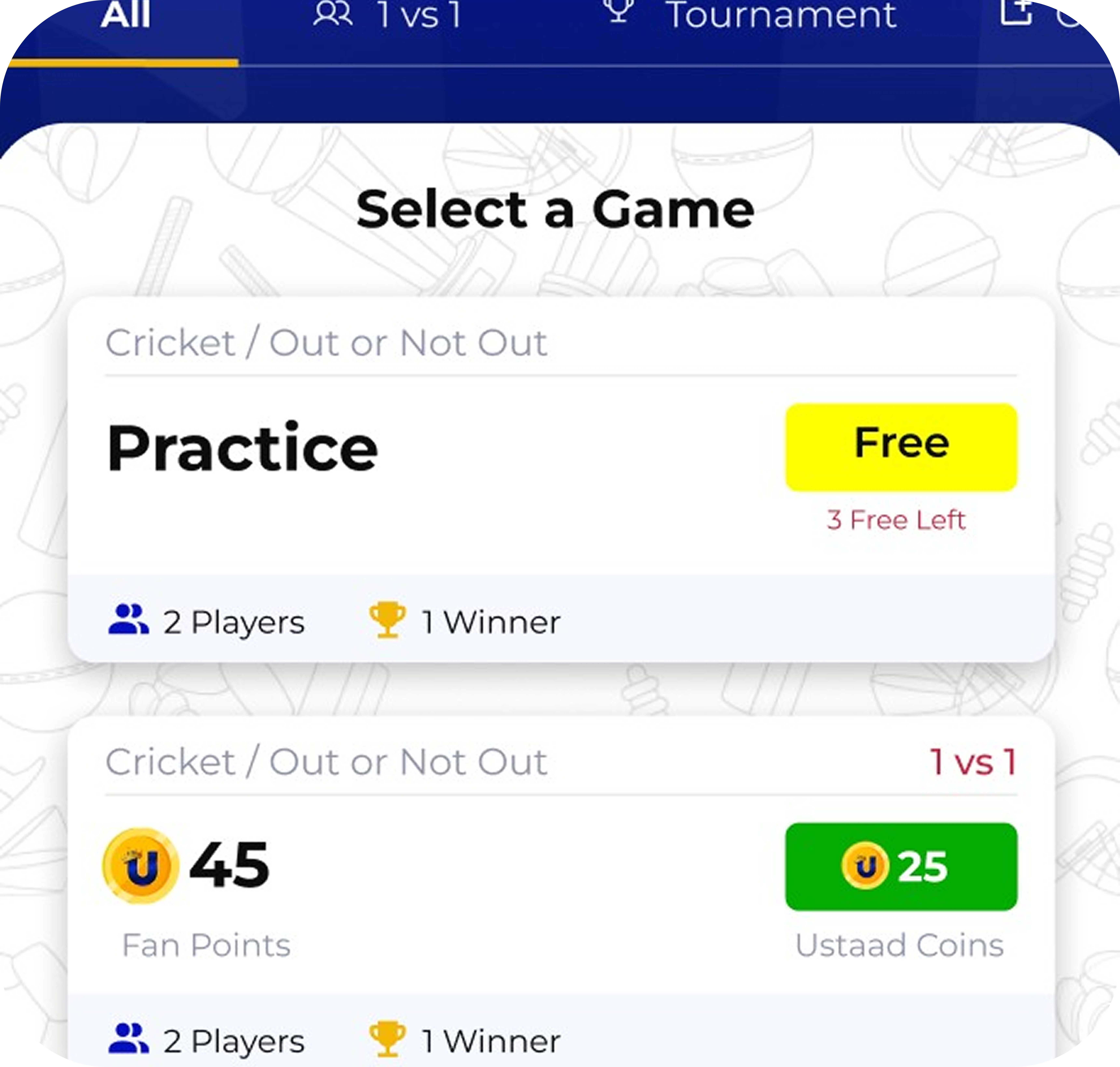 USTAAD is India’s first interactive sports gaming app where fans play short, skill-based games based on real cricket moments.
