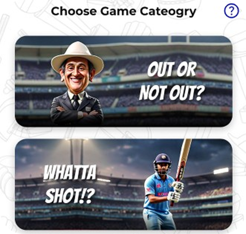 Questions are based on real video clips — like “Out or Not Out?”, “Where did the ball go?”, “Whatta Shot?”, and more.
